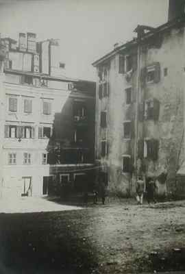 L'etimologia della parola Sporcavilla è piuttosto incerta, difficile credere che il nome si rifacesse alla quantità di acque stagnanti che lì si formavano, più facile ritenere il nome derivato dal casato o pseudonimo di una persona specifica. Per quanto riguarda l'edificio, corrispondente alla P.T. 239, la sua registrazione nei Libri Maestri dell'Ufficio Tavolare risalirebbe all'anno 1805. Secondo la "Coscrizione generale Della Città e Porto Franco di Trieste" l'edificio in oggetto si chiamava, dal nome del proprietario, Casa Geremia Francol. La "Distinta di tutte le case e della superficie quadrata dei fondi in questa Città Governante l'Urbario di Trieste" testimonia invece lo stato di proprietà dell'edificio e la sua estensione dimensionale nell'anno 1818. Nell'anno 1841, secondo quanto risulta dal "Catasto di fabbricati nella città di Trieste e loro valutazione 1841", la casa era intestata ad Andrea Dogan. La registrazione nei Libri Maestri dell'Ufficio Tavolare dell'edificio corrispondente alla P.T. 238 risalirebbe invece al 1803. La casa, stando alle notizie tratte dalla "Coscrizione generale Della Città e Porto Franco di Trieste" si chiamava, dal nome del proprietario, Casa Santo Gabelli. Anche in questo caso ci fu un'estensione dimensionale nel 1818. Infine, la registrazione storica della costruzione al N.T 237 risalirebbe all'anno 1804. L'edificio, dal nome del proprietario, si chiamava Casa Dr. Mattio Supaucig. Nel 1818, anno della sua estensione dimensionale, la casa disposta su tre livelli con due magazzini al piano terreno e due stanze per piano apparteneva a Umez Luca-Bottaro.