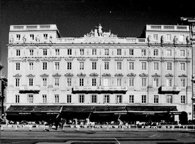 STATUE Il gruppo scultoreo collocato sulla sommità dell'immobile, fu realizzato dal veneziano Luigi Zandomeneghi, e simboleggia le arti, l'industria, la navigazione e il commercio. Un particolare curioso è rappresentato dal modello della prima locomotiva usata dall'Austria. Altre statue sono poste tra le finestre dell'ultimo piano a livello delle sopraelevazioni laterali della facciata. ISCRIZIONE Al centro della balaustra di coronamento prospiciente piazza dell'Unità un riquadro reca scolpita la scritta "Assicurazioni Generali", eseguita nel 1872. LESENE Lesene di ordine gigante con capitello ionico sulla facciata principale. PARASTE Paraste scanalate di ordine gigante con capitello dorico sulle facciate laterali BALAUSTRE Parapetti in pietra e in ferro battuto ornano i balconi.