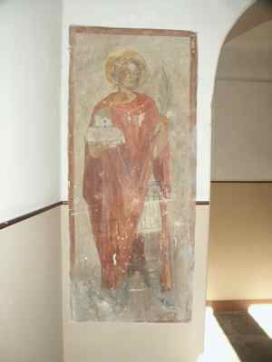 ELEMENTO ORNAMENTALE (esterno) Inferriate in ferro battuto decorate da motivi geometrici in corrispondenza dei fori architettonici del piano terra. AFFRESCO (interno) Nell'atrio d'ingresso, raffigurazione parietale di S. Giusto protettore e patrono della città (PICT0191.JPG), raffigurata nelle sue mani, con chiara identificazione della cattedrale sul colle, delle mura medievali, della città esistente al loro interno e, forse nell'angolo sinistro vicino alla stessa cattedrale l'edificio stesso in cui si trova l'affresco.