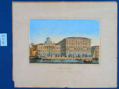 L'edificio venne realizzato nel 1839 su progetto dell'architetto Giovanni Degasperi, sul sito in cui sorgeva l'antica Cappella Rossetti. In origine intitolato al principe Metternich, assunse il nome di Hôtel de la Ville solo nel 1871. L'albergo, inaugurato il 1° giugno del 1841, ospitò personaggi importanti, come conti, ambasciatori, artisti, tra cui Giuseppe Verdi nel 1850, il re Ottone di Grecia nel 1858, fino a Gabrile D'Annunzio nel 1902. L'albergo era dotato anche di bagni pubblici, di acqua dolce, del Grande Ristorante con vista sul mare e del Cafè Divan, aperto nel 1839. Al 1860 risalgono i rettangoli scolpiti a bassorilievo sul pianterreno rappresentanti una decina di figure allegoriche, opera degli scultori Giuseppe Moscotto e Giovanni Depaul. Tale decorazione voluta dal mecenate Pasquale Revoltella si affiancava alla serie di tondi a rilievo dello scultore Pietro Zadomeneghi. Nel 1888 vennero apportate delle modifiche al pianoterra. Lavori di ristrutturazione generale interessarono l'edificio negli anni Ottanta del secolo scorso. Nel 1911 l'albergo venne acquistato dall'Unione Austriaca di Navigazione. L'edificio venne ristrutturato nel 1932 dall'architetto Gustavo Pulitzer Finali e nel 1955 dall'architetto Rutter. Rimase in esercizio fino al 1975; in seguito venne risistemato sotto la direzione dell'ingegnere Marino Bolaffio. Dal 1985 al 2004 gli ambienti del pianoterra sono stati occupati dalla sede della Banca Popolare di Novara.