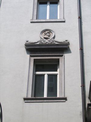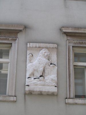 ELEMENTI ORNAMENTALI (esterno) Decorazioni a motivi floreali e spiraliformi e tondi con profili di uomini illustri del passato a bassorilievo ornano le finestre del secondo piano. SCULTURE (esterno) Sopra la trabeazione del portale in via Mazzini è presente un gruppo scultoreo raffigurante Mercurio entro una conchiglia affiancato da due tritoni. LAPIDE (esterno) Sulla facciata in via Mazzini è collocata una lapide in pietra bianca con il leone di San Marco scolpito a bassorilievo