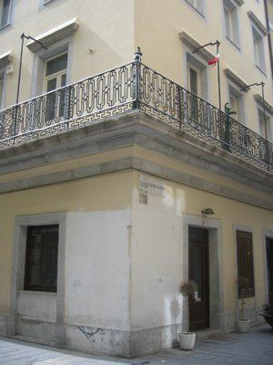 L'edificio presenta una pianta rettangolare e due affacci, uno su via delle Beccherie e uno su via del Ponte. Il fabbricato,costituito da cinque piani fuori terra, è caratterizzato un balcone ad angolo ingentilito da una ringhiera in ferro battuto all'altezza del primo piano. Tutte le aperture dei piani superiori sono incorniciate da inquadrature in pietra e sormontate da un architrave lineare.