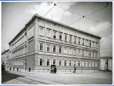ELEMENTO ORNAMENTALE (esterno) Paraste di ordine gigante rifinite ad intonaco rafforzano le fasce d'angolo delle facciate sul fronte strada. ELEMENTO ORNAMENTALE (esterno) Fascia ornamentale di coronamento della facciata con doppi fregio; quello inferiore decorato da motivi geometrici; quello superiore decorato da decorazione continua a greca. ELEMENTO ORNAMENTALE (esterno) Portale monumentale in corrispondenza dell'ingresso di Via della Bastia, dotato di cornice modanata in pietra bianca di notevoli dimensioni; tettoia metallica di grandi dimensioni a protezione dell'ingresso, decorata da elementi di sostegno reticolari decorati da motivi geometrici. ELEMENTO ORNAMENTALE (esterno) Sulla Via della Bastia, agli estremi della facciata, attici con piccole finestre quadrate; decorazione di facciata a lesene con capitello ionico, timpano modanato con dentelli ed acroteri. ISCRIZIONE (interno) Sulla parete di fondo dell'atrio di ingresso di Via della Bastia, iscrizione in caratteri corsivi riportante la dicitura "...i nostri figlioli siano educati al sacrificio, e non al tornaconto. Scipio Slataper" ELEMENTO ORNAMENTALE (interno) Nella'atrio di ingresso di Via della Bastia, busto in marmo nero alla memoria di Scipio Slataper. ELEMENTO ORNAMENTALE (interno) Al secondo piano del corridoio ovest, busto in marmo nero alla memoria di Ruggero Timeus. LAPIDE (interno) Al secondo piano del corridoio ovest, lapide in pietra di Aurisina, riportante la seguente dicitura in caratteri rossi: "RUGGERO TIMEUS; UCCISO DA GRANATA AUSTRIACA IL 14 SETTEMBRE 1915 A VETTA PAL PICCOLO; VITA BREVE PURA RADIOSA TUTTA OFFERTA E SACRIFICATA ALL'ITALIA; I SUOI COMPAGNI DELL'8 ALPINI; A CURA DELL'A.N.A. DI TRIESTE, MCMLIX". ELEMENTO ORNAMENTALE (interno) Balaustre metalliche in ferro decorate da motivi geometrici con corrimano ligneo, in corrispondenza di tutti i vano scala dell'edificio.