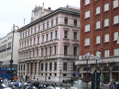 Nel 1883 la società delle Assicurazioni Generali, fondata nel 1831, commissionò all'ingegnere Eugenio Geiringer il progetto per la costruzione di un nuovo palazzo da destinare a sede centrale della compagnia. La costruzione dello stabile ebbe iniziò nel 1884, e terminò nel 1886. A partire dall'agosto del 1886 nel nuovo palazzo di piazza Duca degli Abruzzi, allora via della Stazione, si trasferirono tutti gli uffici che prima si trovavano in Palazzo Carciotti. Il Palazzo delle Generali fu il primo edificio a Trieste ad avvalersi della luce elettrica per l'illuminazione degli uffici. L'edificio, in stile neogreco, fu ampliato nella seconda decade del Novecento con un'ala retrostante. Nel vestibolo è collocato un grande bassorilievo bronzeo raffigurante guerrieri e vittorie alate, opera dello scultore genovese Luigi Supino. Nel 1939 Carlò Sbisa realizzò due affreschi nell'atrio del palazzo.