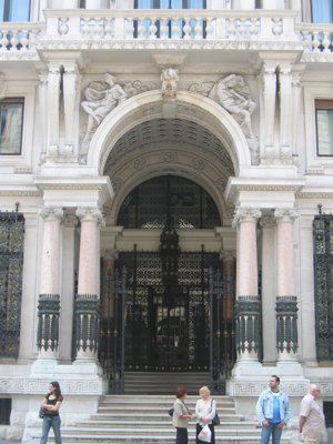 Il palazzo viene realizzato tra il 1909 ed il 1914 per ospitare la sede della Riunione Adriatica di Sicurtà su progetto degli architetti Ruggero ed Arduino Berlam. I problemi relativi all'ideazione dell'edificio sono abbastanza complessi: dalla scelta del terreno per la nuova sede, all'idea di bandire un concorso per il progetto fino alla realizzazione. Nel 1902 Adolfo de Frigyessy, direttore della Compagnia dal 1899, decide acquistare un'area centrale della città tra via Dante Alighieri, Santa Caterina, Corso Italia e piazza Nuova, oggi piazza della Repubblica. Sette anni dopo la società bandisce un concorso ad inviti per il progetto dell'edificio al quale partecipano dieci concorrenti; Ruggero ed Arduino Berlam si aggiudicano l'incarico con un disegno scenografico e monumentale arricchito da sculture e oggetti di design per l'allestimento interno. L'edificio viene arretrato di alcuni metri rispetto alle vecchie costruzioni permettendo una maggiore possibilità di lettura della struttura. Attualmente l'edificio ospita al pianterreno attività commerciali e uffici ai piani superiori.