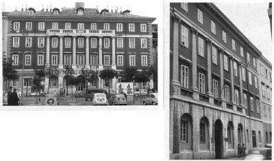 L'edificio, in stile neoclassico, è composto da pianoterra e tre piani superiori. Il prospetto principale, che si affaccia sulle rive, è caratterizzato da un corpo centrale in aggetto con una serie di arcate in bugnato liscio che sorreggono una balaustra in pietra, sulla quale si impostano sei semicolonne ioniche, comprendenti primo e secondo piano. Al di sopra del colonnato si imposta una balconata a colonnine in pietra. Le altre due facciate dell'edificio ripetono il motivo dell'ordine gigante del prospetto su riva Nazario Sauro, ma le semicolonne sono sostituite da lesene ioniche. La facciata su via dell'Annunziata è contraddistinta da un balcone centrale. Tutte le finestre del piano nobile sono architravate. Una cornice a dentelli conclude le facciate sotto lo sporto di linda, sostenuto da mensoline. Sul tetto, in posizione centrale rispetto alla facciata principale, si erge una torretta con cupola.