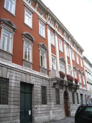 L'edificio venne fatto costruire nel 1821 da Leopoldo Mauroner, comandante della milizia territoriale e proprietario del teatro Mauroner. Il progetto è dell'architetto Matteo Pertsch. La sopraelevazione del mezzanino e le modifiche alle decorazioni della facciata si devono all'intervento di Antonio Somazzi nel 1876. Al 1923 risale un'ulteriore sopraelevazione parziale. Tra il 1986 e il 1987 l'immobile è stato interessato da lavori di restauro alla facciata principale e alla copertura. Nel 1823 Leopardo Mauroner affittò il palazzo al vescovo di Trieste Antonio Leonardis, che vi stabilì temporaneamente la sede vescovile e vi morì nel 1830. Nel 1854 l'immobile venne acquistato dal negoziante Alessandro Covacevich, capo della comunità greco-ortodossa; in seguito lo ereditò il figlio Giovanni che ne fu proprietario fino al 1911. Nel 1918 divenne la sede della società di esportazione di cemento Portland-Trieste. Infine, il palazzo divenne proprietà della famiglia Stock.