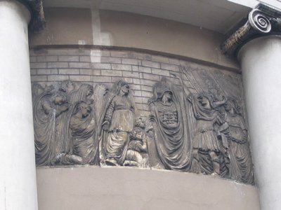 COLONNE (esterno) Colonne di ordine gigante con capitello ionico. STATUE (esterno) Alle estremità del colonnato sono collocate due statue raffiguranti Marte e Minerva, realizzate nella bottega veneziana di Antonio Bosa. FREGI (esterno) I fregi scolpiti a bassorilievo raffigurano eventi eroici della Roma repubblicana, in particolare una vicenda legata a Coriolano, Virginia uccisa dal padre e il sacrificio di Ifigenia. BALAUSTRE (esterno) Il parapetto del colonnato è caratterizzato da balaustrini da anfora in pietra. AFFRESCHI (interno) Decorazioni ad affresco sono presenti nella sala circolare e nella cosiddetta "saletta pompeiana". Rappresentano temi desunti dall'iconografia classica, come ad esempio la favola di Amore e Psiche, e affreschi di stile pompeiano.