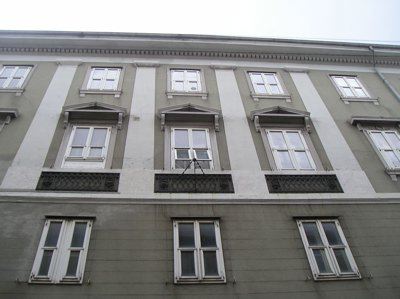 BALCONE (esterno): Balcone con balaustra in pietra in corrispondenza della parte centrale del terzo piano del prospetto su Riva Sauro. BALCONE (esterno): Parapetto in ferro battuto in corrispondenza della parte centrale del terzo piano dei prospetti su Via Venezian e Cadorna. LESENE (esterno) Lesene scanalate di ordine gigante in corripsondenza della superficie rientrante centrale del prospetto su Riva Sauro. RILIEVI (esterno): Rilievi raffiguranti crone di alloro a decorazione delle finestre del terzo piano. CORNICE (esterno): Cornice a dentelli a coronamento dell'edificio. CORNICE (esterno): Conci in bugnato liscio disposti a pettine a cornice della specchiatura rientrante del prospetto su Riva Sauro e a rinforzo degli angoli dell'edificio.