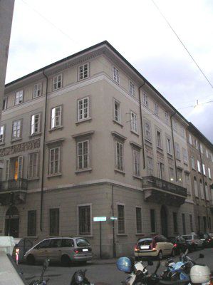 In questo edificio neoclassico, costruito nel 1823 su progetto di Matteo Pertsch, troviamo il motivo caro a lui caro di ornamenti a bassorilievo presente in numerose sue opere, e per il quale egli stesso si interessava contattando direttamente scultori e scalpellini. Nel 1952 sono state operate delle modifiche alla facciata al pianterreno.