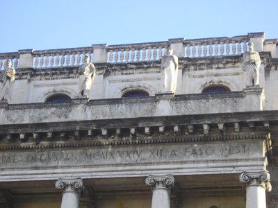 ISCRIZIONE (esterno) Sulla trabeazione del colonnato è incisa l'iscrizione latina "SEDES IVSTITIAE VRBIS LIBERTATE DECUS AN. MCMXXXIV XII A FASC. REST." COLONNE (esterno) Colonne e semicolonne di ordine gigante con capitello ionico PARASTE (esterno) Paraste lisce di ordine gigante con capitello ionico STATUE (esterno) Sei statue in pietra dell'altezza di oltre 3 metri raffiguranti: Emilio Papiniano, Triboniano e Domizio Ulpiano, realizzate da Marcello Mascherini. Le statue di Salvio Giuliano, Gaio e Paolo Giulio Aulo sono state scolpite da Franco Asco. BALAUSTRE (esterno) Balaustre con balaustrini in pietra a livello del piano nobile sui corpi centrali delle facciate e sul tetto in corrispondenza dei corpi centrali e agli angoli.
