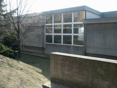 Fabbricato di fine secolo XX, composto da più corpi edilizi dalle forme stereometriche in calcestruzzo armato a vista, edificato su un'ampia area di pertinenza. Sono presenti ampie solette in calcestruzzo armato dagli sporti notevoli, formanti aree porticate, terrazzi, passaggi esterni e spazi aperti per la ricreazione o le attività all'aperto. Serramenti a nastro o grandi vetrate a tutta parete modulano l'ingresso della luce naturale a seconda dell'esposizione geografica.