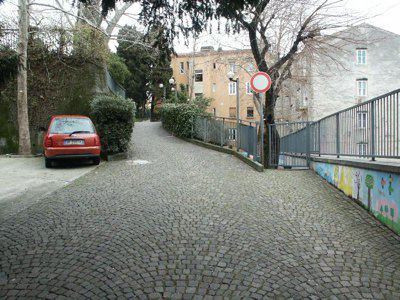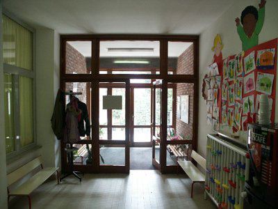 Il fabbricato risulta isolato su un lotto di pertinenza ricavato sul pendio che dal rione di Roiano sale sulle pendici del monte di Scorcola. L'edificio è costruito a ridosso di un pastino al limite nord del lotto; il giardino è ricavato su una serie di terrazzamenti esposti a sud e diversamente pavimentati a seconda dell'uso. Le funzioni scolastiche sono contenute esclusivamente al piano superiore dell'edificio, caratterizzato da ampie vetrate esposte a sud e da paramenti murari esterni in laterizio e calcestruzzo facciavista. Al piano inferiore, accessibile dal lato est e parzialmente seminterrato, si trovano alcuni vani tecnici e l'appartamento del custode. Le strutture portanti verticali e orizzontali sono in calcestruzzo armato, talvolta a vista; la copertura a falde è rivestita da un manto di coppi curvi rossi uso Trieste; sul lato nord una serie di contrafforti in calcestruzzo armato contribuiscono a reggere la spinta del muro in pietra che delimita il pastino del terreno confinante e ricavano uno stretto passaggio su cui si aprono le finestre dei locali di servizio della scuola.