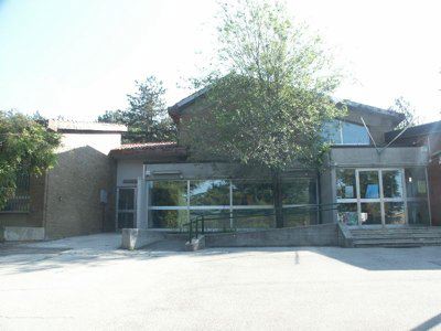 Il fabbricato si colloca nel mezzo di un ampio lotto di pertinenza, posto di poco a nord della piazza centrale di Borgo S. Sergio. L'architettura tipica degli anni sessanta, tendente al razionalismo, si rifà nei materiali utilizzati all'edificato circostante, mostrando in facciata un rivestimento in laterizio accompagnato da ampie porzioni in calcestruzzo armato a vista. La struttura portante è mista in setti e pilastri in calcestruzzo armato, con solai di copertura in laterocemento. La composizione planimetrica si presenta articolata in una serie di corpi edilizi monopiano collegati da un corridoio assiale. I diversi livelli cui sono poste le coperture a falda con manto in coppi curvi rossi, consentono alla luce naturale di illuminare anche le parti più interne dell'edificio scolastico. Ampie finestrature in alluminio consentono un'abbondante illuminazione naturale interna. A nord le sistemazioni esterne sono a verde, mentre a sud si aprono i campi da gioco all'aperto utilizzati soprattutto dal ricreatorio comunale.