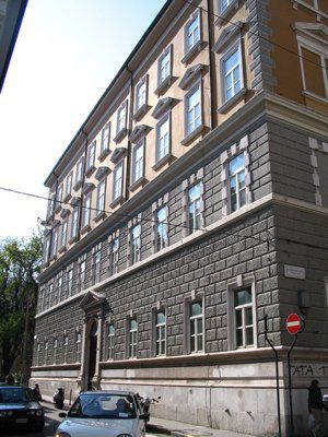 L'edificio fu costruito tra il 1875 e il 1877 su progetto dell'ingegnere Giovanni Righetti. L'immobile fu fatto costruire dalla Banca Triestina di Costruzioni con lo scopo di riunire in un'unica sede tutte le scuole del borgo Giuseppino. L'area sulla quale venne eretto il palazzo delle scuole in precedenza era occupata da due stabili erariali. La prima pietra dell'edificio fu posta l'8 maggio 1875. Nel 1876 iniziarono a funzionare le prime scuole all'interno dell'immobile. A fine Ottocento si trovavano ospitalità nel Palazzo il Ginnasio, la Scuola Reale Superiore e la Scuola Cittadina, con le sezioni maschile e femminile. Fino al 1968 l'edificio ha ospitato il Civico Museo del Mare, successivamente trasferito nell'ex Lazzaretto San Carlo. Attualmente nel palazzo hanno sede l'Istituto Nautico "Tomaso di Savoia Duca di Genova" e l'Istituto Tecnico Commerciale " G. R. Carli".