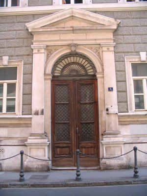 ELEMENTI ORNAMENTALI (esterno) Decorazioni a motivo floreali a rilievo ornano le lunette dei portali e le specchiature interposte alle finestre dell'attico. MASCHERONI (esterno) Panduri raffiguranti volti umani sono collocati in chiave d'arco dei portali d'ingresso. COLONNE (esterno) Colonne addossate di ordine tuscanico sostengono la trabeazione dei portali d'ingresso in Piazza Hortis e via Diaz. SEMIPILASTRI (esterno) Semipilastri di ordine tuscanico sorreggono la trabeazione dei portale in via dell'Annunziata e Via San Giorgio.