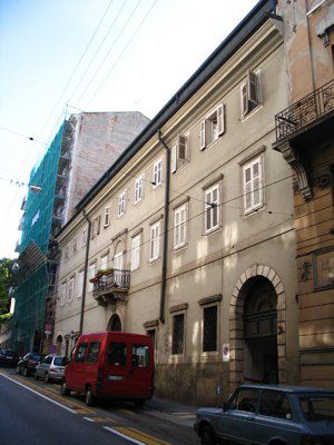L'immobile, costruito alla fine del XVIII secolo in stile eclettico, si trova in Via Martiri della Libertà, già Via Commerciale Vecchia. La vecchia strada regia, tracciata sul pendio del monte fino ad Opicina, venne aperta nel 1779 per agevolare il trasporto delle merci verso l' Italia e la Germania (Generini). Tutelato principalmente per le caratteristiche architettoniche del prospetto, cui si fa specifico riferimento nel decreto di vincolo, l'immobile viene definito come tipico esempio di edificio del Settecento triestino con funzioni residenziali e commerciali. Il provvedimento di vincolo è limitato alla facciata principale.