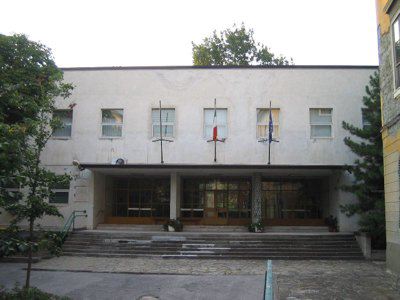La scuola media San Cirillo e Metodio sorge alle pendici del colle di San Giovanni in un lotto di forma regolare, ma condizionato da una lieve pendenza. L'intero lotto è cinto da un muro in pietra arenaria. I percorsi interni sono asfaltati così come il piazzale antistante la palestra. Il fabbricato si compone di un corpo centrale che ospita le aule e i servizi e di un corpo laterale adibito a palestra. L'intero edificio si struttura su due livelli fuori terra. Le strutture verticali sono in cemento armato. Gli orizzontamenti sono in laterocemento. La copertura è piana in cemento armato con una guaina impermeabile di protezione.