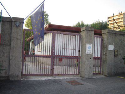 La scuola materna di San Giovanni sorge all'interno di un lotto rettangolare ai piedi dell'omonimo colle. L'intera area è protetta da un muro in cemento armato rivestito da intonaco graffiato. Il piazzale circostante è asfaltato. Il fabbricato ospitante la scuola si struttura su un solo livello fuori terra ed è composto da un basamento in cemento armato e una struttura in acciaio tamponata con pannelli "sandwich". La copertura è realizzata con travi in acciaio e lamiera. Accessi garantiti da scale esterne in cemento armato (la principale) e in acciaio (le secondarie).