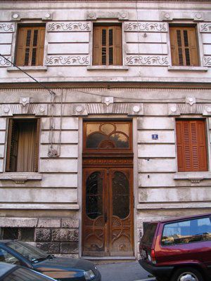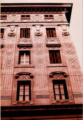ELEMENTI ORNAMENTALI (esterno) Motivi floreali e geometrici sono caratterizzano gli intonaci di facciata. LESENE (esterno) Lesene con motivi geometrici incisi e decorazioni circolari a rilievo, che si sviluppano per un'altezza di tre piani. MENSOLE (esterno) Mensole a sostegno dello sporto di linda.