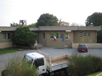 La scuola materna di Gretta sorge lungo le pendici dell'omonimo colle e si inserisce in un lotto di forma ed andamento altimetrico irregolari. L'edificio si compone di un corpo di fabbrica sviluppato su due livelli fuori terra, uno dei quali risulta interrato sulla facciata principale. Dal piazzale di parcheggio una strada di servizio serve il fianco posteriore dell'edificio. L'intero lotto è cinto da un muro in cemento armato con soprastante rete di protezione. Le strutture verticali portanti sono in cemento armato con tamponamenti in laterizio. I solai e la copertura piana sono in laterocemento.