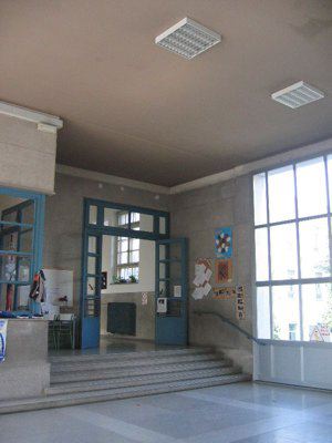 TARGA (esterno) elemento lapideo esterno posto sul muro di cinta lungo Strada Vecchia dell'Istria, recante incisi la denominazione della scuola "SCUOLA MATERNA COMUNALE DI SAN SABBA" e uno stemma colorato con alabarda. TARGA (esterno) elemento lapideo esterno posto sul fronte principale d'ingresso, recante incisi la denominazione della direzione didattica "DIREZIONE DIDATTICA STATALE DI S. SABBA" e lo stemma della Repubblica Italiana. TARGA (esterno) elemento lapideo esterno posto sul fronte principale d'ingresso, recante incisi la denominazione della scuola "SCUOLA ELEMENTARE STATALE DOMENICO ROSSETTI" e lo stemma della Repubblica Italiana. LETTERE (esterno) elementi lapidei esterni posti a fascia sul fronte principale d'ingresso, che compongono il nome della scuola "SCUOLA ELEMENTARE D. ROSSETTI". BUSTO (interno) busto bronzeo su base in pietra di Domenico Rossetti.