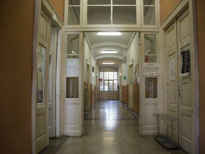 Lungo la Strada di Guardiella un muro in conci squadrati a corsi orizzontali di pietra arenaria , della stessa altezza del basamento dell'edificio, funge da contenimento del terreno adibito a giardino. Un marcapiano modanato in pietra bianca bulinata definisce il livello del piano di calpestio del piano terra. Un basamento in conci squadrati di pietra arenaria a corsi orizzontali corre lungo l'intero perimetro del fabbricato a protezione della porzione bassa delle facciate. Le restanti parti di facciata risultano intonacate in colore rosa chiaro, con l'interruzione di un marcapiano in pietra bianca posto al livello del davanzale delle finestre del secondo piano. Lesene ad intonaco grigio scandiscono verticalmente i ritmi della facciata e rafforzano gli angoli del fabbricato; il coronamento è costituito da un marcapiano modanato e da una linda aggettante finita ad intonaco. Gronde e pluviali sono in lamiera verniciata. I fori architettonici sono contornati da cornici in pietra bianca bulinata, con architrave modanato con gocciolatoio e piccole mensole in pietra. Un piccolo portico posto in corrispondenza di una rientranza dal filo di facciata sul prospetto ovest, protegge l'ingresso principale. Due pilastri e una trabeazione in pietra bianca incorniciano i varchi di accesso al portico, richiamando geometrie tipiche dello stile liberty. Un balcone di pertinenza dell'appartamento del custode sovrasta l'ingresso, con un parapetto in ferro battuto decorato. I serramenti vetrati di finestra, quasi tutti originali, sono doppi in legno massello verniciato, a doppia anta a quattro specchiature e sopraluce vetrato. Le porte di accesso sono in legno massello verniciato a doppia anta con specchiature vetrate protette da inferriate in ferro battuto. Gli infissi interni sono costituiti da porte in legno verniciato color crema a doppia anta con specchiature piane. I pavimenti degli spazi comuni sono costituiti da un battuto di cemento e graniglia. Le aule sono pavimentate in parquet disposto a spina di pesce. I paramenti murari interni sono rifiniti ad intonaco bianco con abbassamento in smalto murale colore beige. Le scale di accesso ai livelli superiori e la breve scala di raccordo tra i due corpi edilizi sono costituire da blocchi di pietra calcarea bulinata e parapetti in ferro verniciato con corrimano ligneo. I pianerottoli di interpiano sono pavimentati con piastrelline colorate esagonali in cotto.
