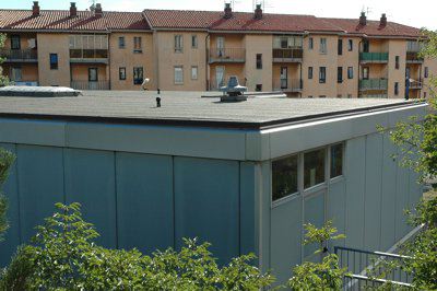 L'edificio sorge nel quartiere di Chiadino su lotto di pertinenza recintato a mezzo di inferriate metalliche verniciate tipo orsogrill. La pianta è a forma irregolare distribuita su un alzato di due livelli. Il piano terra è aperto sul prospetto di Via Dei Mille in corrispondenza di un ingresso secondario, l'accesso principale è collocato invece sul retro del fabbricato all'altezza del primo piano. La struttura edilizia è in cemento armato e latero cemento. La superficie delle facciate, con basamento rifinito ad intonaco grezzo, è rivestita da pannelli sandwich con superficie esterna in materiale plastico colorato; le finestre vetrate presentano telaio in alluminio. La copertura è piana, con rivestimento in guaina bituminosa.