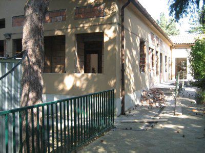 Edificio si trova nel quartiere di Villa Opicina ed è inserito in un'area delimitata da una recinzione con inferriate metalliche che delimita un piazzale in cemento utilizzato e attrezzato per attività ricreative; un giardino si sviluppo in prossimità dell'affaccio retrostante. La planimetria si sviluppa secondo uno schema irregolare composto da tre corpi accostati costituiti da due piani fuori terra e un piano interrato. Struttura portante verticale in pilastri di cemento armato con tamponamenti in laterizio, orizzontale composta da solai in laterocemento. Copertura a falde inclinate in laterocemento con manto in coppi di laterizio. Pluviali in pvc esterni alla muratura su tutti gli affacci con grondaia in rame. Le facciate sono rivestite in intonaco con tinteggiatura di colore bianco lungo la fascia del basamento e di colore marrone chiaro sul resto delle facciate. Le aperture sono disposte secondo un disegno regolare di facciata, mentre i serramenti sono stati temporaneamente rimossi a causa di alcuni lavori di ristrutturazione che riguardano l'intero edificio. L'ingresso principale, posto al centro della facciata, è preceduto da una breve scala con gradini in pietra artificiale.