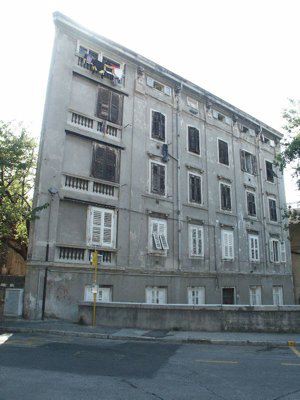 Il progetto relativo all'erezione di un fabbricato sul fondo tavolare n. 95 di Chiarbola inferiore, di proprietà di Riccardo Cadel, risale ai primi anni del novecento allorquando il Comune, con decreto n. 65040 datato 14 ottobre 1904, ne approvò la costruzione (il piano di fabbrica riporta la firma di Carlo Fogolin costruttore edile autorizzato). L'edificio, destinato ad uso abitativo e prospiciente l'allora via dei Navali -la cui denominazione si collegava in modo esplicito al gran numero di operai che giornalmente percorrevano quella strada, per recarsi ai cantieri navali appunto- si presenta con una forma curiosamente triangolare, stretto in una morsa soffocante tra la zona del Broletto e la superstrada. L'eclettica facciata offre elementi architettonici di pregio: decorazioni con foglie d'acanto, particolari balaustre in pietra, serramenti in legno molto originali (due lignee colonnine corinzie a fianco delle comuni imposte a doppio battente) ed infine, sei teste di leone sovrastanti medaglioni in rilievo e lesene. Lo stabile, intavolato all'inizio del XX secolo con il numero 2701di via dei Navali, subì nel 1910 delle sostanziali modifiche nel suo aspetto generale per opera di Valentino Colobig, costruttore edile autorizzato, il quale aggiunse una nuova ala al fabbricato aumentandone notevolmente le dimensioni. Nel 1956 i fori d'ingresso prospicienti via Navali vennero ridimensionati.