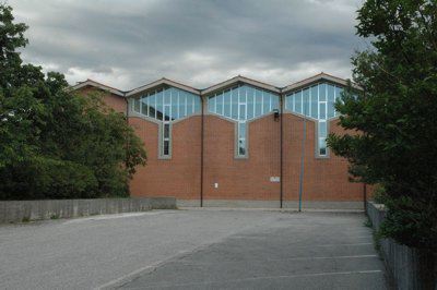 Edificio situato all'interno dell'abitato di Prosecco. Fa parte di un complesso edilizio posto all'interno di un lotto definito e delimitato da un recinto con ampio giardino, un parcheggio retrostante e un piazzale utilizzato per le attività sportive. Sviluppo planimetrico con forma ad "U" composto da un corpo centrale su due livelli fuori terra e da due ali laterali su un livello. Struttura portante in cemento armato con solai in laterocemento. I prospetti esterni presentano un basamento in cemento e un rivestimento superficiale in mattoni faccia a vista. Aperture distribuite in modo regolare. finestre dei corpi laterali di forma rettangolare e a nastro con doppia anta, infisso e avvolgibile in legno. finestre del corpo principale con forma particolare che segue l'inclinazione delle falde di copertura e telaio in alluminio anodizzato composto da nove elementi rettangolari a sviluppo verticale con apertura centrale. Gli ingressi principali si aprono sui corpi laterali dell'edificio e presentano un'ampia vetratura modulare con telaio in alluminio. In prossimità è situato un elemento in cemento sporgente rispetto alla facciata e decorato sulla superficie con bassorilievi a motivi geometrici. Copertura a spioventi con rivestimento in coppi curvi rossi. Le grondaie e i pluviali, esterni rispetto alla muratura, sono in lamiera verniciata.