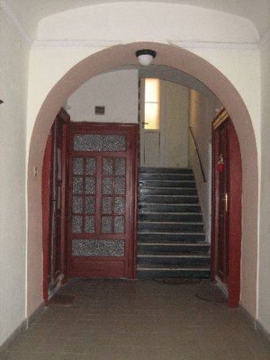 L'edificio sito in vicolo delle Ville 8, l'antica Via S. Lucia, risale all'ultimo quarto del XX secolo allorquando sul fondo indicato con il N.Tav. 2041 di proprietà del sig. Lorenzo Kaderk vene eretto, su progetto dell'arch. Lorenzutti, un fabbricato di 4 piani. Nel 1939 subì un intervento di restauro relativo alla sistemazione della soffitta. Nel 1985, così come ricorda una targa posta sulla facciata del caseggiato, la casa fu fatta dono al Comune per la benevolenza della di lei proprietaria Giuseppina Rustia vedova Riccio.