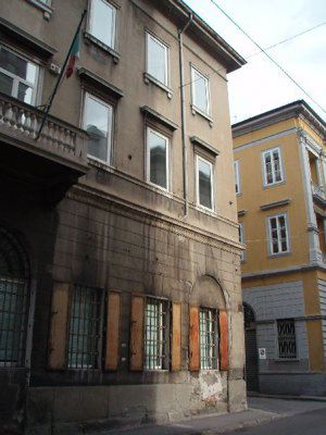 Il 30 agosto 1853, con il numero di decreto 12312, il Magistrato Civico approvava un progetto per l'erezione di un fabbricato prospiciente l'allora Contrada Dobler. La via, prendeva il nome dalla presenza in quella zona di uno stabile, risalente al 1802, con annesso terreno destinato a caserma e chiamato appunto Dobler dal nome del suo primo proprietario. Tale fondo, che un tempo serviva per gli esercizi militari, fu acquistato dal Comune nel 1808 e destinato ad uso scolastico. All'inizio del XX secolo la contrada cambiò denominazione, venendo intitolata al pittore triestino nato nel 1830. Il piano del caseggiato, molto semplice nelle sue fattezze si ergeva per due soli piani e recava la firma di Giorgio e Domenico Righetti. Nel 1875 la casa fu rimaneggiata da Domenico che, commissionato dall'allora proprietario dello stabile, il cav. Anastasio Vardacca, modificò in maniera sostanziale la struttura interna, aggiungendo un balconcino in ghisa al piano nobile. Nel 1912 si pensò di alzare di ben tre livelli l'intero edificio. I progetti di abbellimento dello stabile al N.Tav. 1540, ad opera dell'arch. Carlo Bonetti, non vennero però mai realizzati, probabilmente per questioni di carattere economico, si preferì quindi lasciare la facciata nella sua originaria e semplice linearità. Nel 1913 i locali, siti al primo e secondo piano, furono adattati e destinati ad ospitare un istituto scolastico.