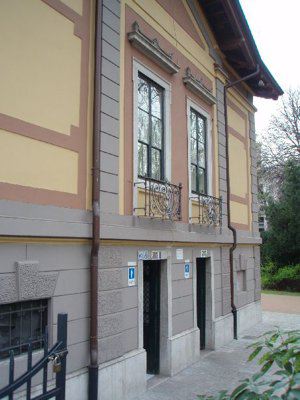L'edificio sorge all'interno del Giardino Pubblico 'Muzio de Tommasini' e si affaccia sulla via Giulia che si sviluppa parallelamente all'area verde. Il manufatto, infatti, sorge isolato ed è inserito nella vegetazione, ma risulta visibile dalla strada. Presenta una pianta regolare pressoché quadrata e si eleva per due piani fuori terra con sottotetto, a partire da una quota inferiore rispetto all'asse viario adiacente. L'accesso avviene tramite due rampe di gradini collocate simmetricamente ai lati della costruzione, in corrispondenza del muretto di cinta. Gli ingressi sono posti lateralmente e conducono agli uffici della Polizia Municipale, da una parte, e ai servizi igienici pubblici dall'altra. La struttura portante dell'edificio è in muratura e la copertura è inclinata. I prospetti principali sono caratterizzati da una serie di forature allineate e di diverso disegno in corrispondenza dei diversi livelli.