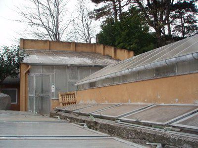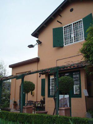 L'edificio principale a due piani presenta una finitura delle facciate ad intonaco di colore arancione chiaro, con prospetti compositivamente omogenei. Le aperture sono tamponate da serramenti ad anta di colore bianco, completati da oscuranti verniciati di verde, griglie metalliche bianche e da cornici lapidee. Alcuni fori sono caratterizzati da davanzali in pietra e tettucci intonacati della stessa tonalità dei fronti. L'ingresso è sottolineato da una bussola con copertura inclinata e serramenti metallici sagomati di colore verde; la struttura è collegata ad un pergolato ligneo, sempre tinteggiato di verde. Il tetto è a falde con manto di rivestimento in coppi e mensole lapidee in corrispondenza del livello sottogronda; un sistema di grondaie e pluviali in lamiera consente lo smaltimento delle acque meteoriche. La facciata parallela all'ingresso è decorata con una meridiana dipinta nel mezzo. La costruzione secondaria è realizzata in muratura a vista con mattoni rossi sovrapposti; la copertura è a falde con manto di rivestimento in coppi e grondaie in lamiera. I serramenti sono sempre di colore verde con oscuranti, mentre le portefinestre che consentono l'accesso sono dotate di un sopraluce vetrato. A fianco sorge un locale accessorio in legno, con struttura lignea costituita da assi sovrapposte e copertura inclinata; gli infissi sono lignei non tinteggiati. Le serre presentano dei fronti rifiniti ad intonaco di colore giallo scuro, mentre le ampie zone vetrate e le coperture inclinate sono state realizzate in metallo e vetro.