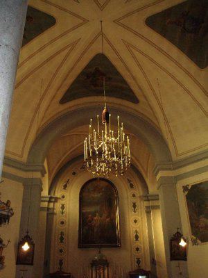 TARGA (esterno): Lastra lapidea collocata sul fronte principale, a fianco dell'ingresso, recante iscritta la dedica "IN QUESTA CHIESA/ MONS. DOTT. JAKOB UKMAR 1878 - 1971/ SACERDOTE DI GRANDE STATURA MORALE/ DIFENSORE DELLA FEDE E DEI DIRITTI DELL'UOMO/ PER 52 ANNI CON DEVOZIONE E FERMEZZA/ ANNUNCIO' LA PAROLA DI DIO/ LA COMUNITA' PARROCCHIALE". Segue la traduzione in lingua slovena. RIQUADRO (esterno): Lastra lapidea con cornice posta sopra il portone principale d'ingresso, con iscrizione latina.