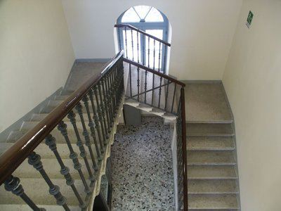LAPIDE (esterno) Sul fronte principale in corrispondenza della parasta a destra del portale di accesso, una lapide in pietra bianca con lo stemma comunale ricorda l'intitolazione della palestra, riportando la seguente dicitura: "PALESTRA COMUNALE NICOLO' COBOLLI". ISCRIZIONE (interno) Sul pavimento dell'atrio di ingresso la dicitura "IN VI SALUS" ricorda il valore dell'attività sportiva per una vita sana.