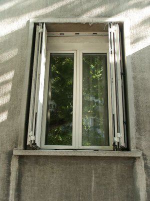 La facciata principale si suddivide orizzontalmente in una parte basamentale trattata ad intonaco grezzo con zoccolatura in pietra artificiale e in una parte superiore trattata ad intonaco liscio. L'ingresso che segna l'asse di simmetria della facciata è protetto da una pensilina a sbalzo in calcestruzzo armato; il serramento del portone di ingresso è formato da una doppia anta vetrata in legno verniciato naturale con sopraluce e inferriate metalliche di protezione. Sulla facciata principale i serramenti esterni di finestra sono a doppia anta vetrata in alluminio verniciato bianco, completi di oscuri ad imitazione degli originali oscuri \"uso Trieste\", del tipo a libro al piano terra, montati a filo esterno della facciata ai piani superiori. I fori architettonici del piano terra sono ridefiniti da cornici in pietra artificiale; ai piani superiori è mantenuto solo un ridotto davanzale in pietra artificiale. Il coronamento è segnato da una canala di gronda metallica verniciata grigia; i pluviali metallici verniciati sono a vista sino all'altezza del solaio del primo piano, quindi si inseriscono nella muratura. Sulla facciata postica, priva di un vero basamento, trattata a intonaco liscio con zoccolatura in pietra artificiale a protezione degli agenti atmosferici, i serramenti mantengono la stessa tipologia con l'aggiunta di un elemento parapioggia metallico orizzontale. In corrispondenza delle finestre del vano scala non sono stati installati gli elementi oscuranti. Una modesta scala esterna in calcestruzzo armato protetta da parapetto metallico verniciato grigio a elementi orizzontali, permette la discesa al cortile dal piano terra rialzato. Internamente gli spazi comuni sono pavimentati in marmette quadrate di graniglia e cemento, mentre le rampe scala sono rivestite in marmo di Aurisina. Un parapetto metallico verniciato bianco con corrimano ligneo verniciato naturale protegge il lato interno della scala. Le superfici verticali sono semplicemente intonacate, dipinte in color bianco con un abbassamento color panna trattato a smalto murale. I serramenti interni di accesso agli alloggi sono costituiti da semplici porte tamburate verniciate ad olio.