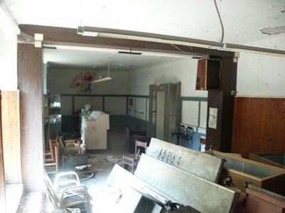 INSEGNA (esterno) Permane sulla facciata principale, in corrispondenza di uno dei due fori di ingresso al piano terra , l'insegna originale della trattoria ex Pavan, realizzata su un pannello in lamiera verniciata e riportante a caratteri stampatello maiuscolo la seguente dicitura: "TRATTORIA EX PAVAN, GIARDINO-BOCCIODROMO".
