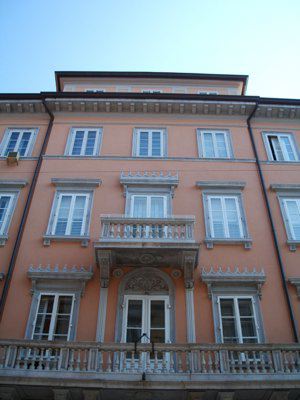ELEMENTI ORNAMENTALI (esterno) Decorazioni a rilievo con elementi vegetali e medaglioni ornano la parte centrale della facciata in corrispondenza dei balconi. MEDAGLIONI (esterno) Nei medaglioni in marmo emergono due volti virili di profilo. Secondo alcuni da identificarsi con i profili dei fratelli Treves, membri di una famiglia che fece fortuna nel commercio a Trieste. BALAUSTRE (esterno) Balaustre con balaustrini in pietra ornano i due balconi in facciata. INFERRIATE (esterno) Le aperture del piano terra sono chiuse da inferriate in ferro battuto che riprendono i motivi decorativi mistilinei delle ghiere degli archi. MENSOLE (esterno) Mensole a voluta decorate con motivi vegetali a rilievo sostengono i balconi. Semplici mensole a voluta a sostegno della linda.