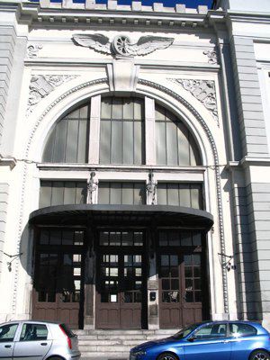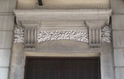 ELEMENTI ORNAMENTALI (esterno) Sopra all'ingresso principale è collocato un elemento scultoreo in stucco a rilievo raffigurante una ruota fiancheggiata da due ali, a simboleggiare la Ferrovia. Una cornice decorativa con ovuli e motivi geometrici circonda l'arco dell'ingresso. Alcune finestre del piano terra sono ingentilite da fregi vegetali scolpiti. MENSOLE( esterno) Mensoline a voluta sostengono i frontoni delle finestre. Mensole semplici a sostegno dello sporto di linda. STEMMI(esterno) Ai lati dell'arco d'ingresso sono presenti due stemmi incorniciati da volute vegetali raffiguranti, uno l'alabarda di Trieste e uno lo stemma sabaudo.