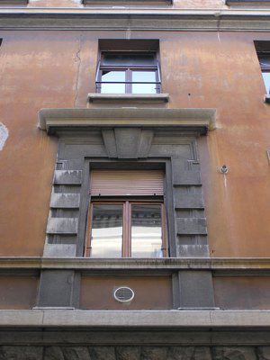 PORTALE (esterno): Portale d'ingresso inquadrato da una struttura in pietra costituita da semipilastri a bugne lisce, elemento architettonico in chiave di colata e trabeazione lineare. CORNICE (esterno): Cornice a dentelli a coronamento del prospetto principale.
