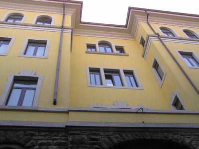 PORTALE (esterno): Portale d'ingresso inquadrato da una struttura in pietra costituita da semipilastri a bugne lisce, elemento architettonico in chiave di colata e trabeazione lineare. CORNICE (esterno): Cornice a dentelli a coronamento del prospetto principale.