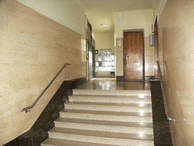 ELEMENTI ORNAMENTALI (esterno) Bassorilievi in pietra artificiale tipici di epoca fascista sono posti a decorazione dei parapetti dei balconi della facciata principale e raffigurano scene lavorative del campo delle costruzioni edili.