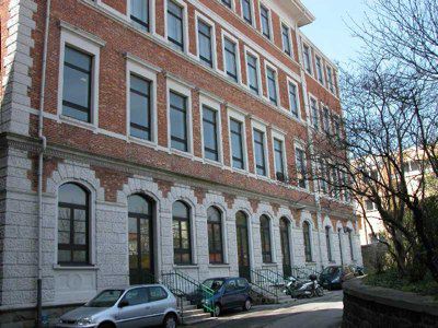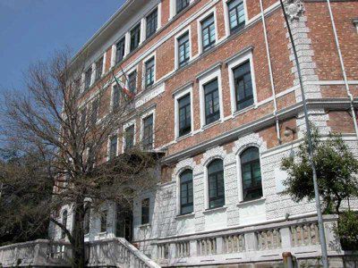 L'imponente edificio che sorge sul colle di san Vito, nel luogo in passato occupato dal "bosco Pontini", venne costruito su progetto di Giorgio Polli nel 1911. Inaugurato nel 1913 come Civica Scuola Reale Superiore, succursale della scuola dell'Acquedotto, nell'anno scolastico 1918-1919 l'istituto venne intitolato a "Leonardo da Vinci". Tra il 1937 e il 1938, l'edificio fu rialzato di un piano, passando da tre a quattro piani fuori terra. Nel corso del secondo conflitto mondiale, a seguito di un pesante bombardamento avvenuto nel giugno del 1944, l'edificio fu abbandonato perché inagibile, e riprese la sua funzione di sede scolastica solo a metà degli anni Cinquanta. Dalla fine degli anni Novanta ospita l'istituto tecnico commerciale "Leonardo da Vinci" e l'istituto professionale "Scipione de Sandrinelli".
