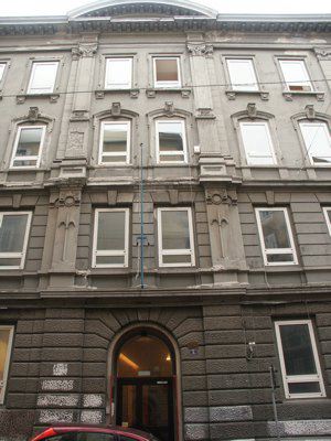 Il 3 agosto 1901, con decreto n. 43237, il Magistrato Civico autorizzava la costruzione della casa ad uso di civica abitazione popolare intitolata a S. de Sandrinelli, sul fondo N. Tav. 1161. I progetti dell'inizio secolo, conservati presso l'Archivio Tecnico del Comune, riportano la firma di Luigi Miani, dirigente il lavoro e De Mottoni, progettista e capo delle arti. L'esteso fabbricato si erge per quattro livelli fuori terra, prospettando la sua elegante facciata, in stile eclettico, sulla via che, nel nome tipicamente triestino, riconduce, etimologicamente parlando, ad un tempo antico quando in quella zona si segnalava la presenza di un ponte. Anzi, secondo lo storico Cavalli, proprio in quell'area scorreva un torrentello che, chiamato Pondares, conferiva all'intera contrada il nome di Pondaresso. L'edificio, ricercato nelle sue decorazioni a lesene e fregi, fu riattato, ad opera dell'arch. Carlo Celli, negli anni Settanta, destinato ad ospitare l'Istituto professionale per il Commercio.