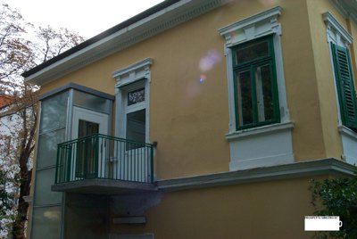 Nel 1896 Vittorio Sinigaglia aveva presentato al Magistrato Civico di Trieste la domanda per poter erigere un locale ad uso Caffè e Birreria a Barcola. Il progetto relativo recava apposta solo la firma del sorvegliante dei lavori, il capomastro Giovanni Battista Dreina. Il progetto però non venne approvato integralmente e fu necessario apportare delle varianti, in particolare le proporzioni e i particolari della decorazione delle facciate vennero considerati scorretti, e si chiedeva l'abolizione del timpano sul prospetto di viale Miramare. L'edificio che venne infine costruito, tra la fine del XIX secolo e l'inizio del successivo, è una costruzione sobria che rispecchia quel gusto equilibrato di decoro e misurata eleganza che lo stesso Comune intendeva diffondere. La costruzione presenta due piani fuori terra ed è circondata da un giardino. La struttura a pianta rettangolare è preceduta da un portico a pianta quadrata sormontato da un terrazzino. La superficie è trattata ad intonaco giallo che contrasta con il bianco del marcapiano e delle cornici delle aperture. L'edificio ospita dal 1975 una struttura del Centro di Salute mentale ed è stato oggetto di restauro nel 2002.
