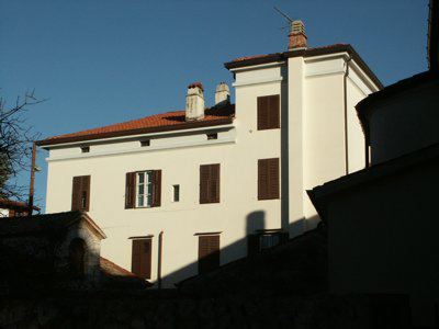 L'antica Comunitatis Sanctae Crucis era abitata, sul finire del XIX secolo, da 1372 anime addette all'agricoltura e alla pesca. In posizione privilegiata e strategica, era la prima stazione di posta in direzione dell'Italia sull'antica Via Gemina, che da Aquileia portava verso il nord-est. Testimonianze documentarie della presenza di un luogo di culto sacro nella zona risalgono al 1260: in un documento dell'Archivio Capitolare di Trieste si evidenzia, infatti, l'esistenza della chiesa di Santa Croce de contrada Tergesti. Un'altra pergamena, risalente questa al 1316, rivela come l'allora vescovo Rodolfo Pedrazzani assegnasse al pievano e al chierico di Tomai possessioni situate nella località di Sancta Cruce. Un riferimento più preciso relativo all'esistenza di una chiesa nel paese si ritrova nello Statuto del Capitolo Cattedrale risalente al 1338. Altri documenti ci informano che, nel periodo compreso tra il 1446 e il 1470, le monache Benedettine del convento di S. Cipriano fossero entrate in possesso dell'intero villaggio. La chiesa, dedicata all'Invenzione della Croce, da cui probabilmente deriva l'intero nome dell'abitato, fu cappellania dipendente da Opicina fino al 1847, quando se ne staccò venendo promossa a parrocchia. Accanto alla chiesa, l'edificio della Canonica. Il fabbricato, in pietra bianca a vista era destinato ad ospitare l'antica scuola del paese. I primi progetti relativi al fabbricato in questione risalgono al 1820 quando si pensò di ampliare la "Casa Curatta e Scuolla unita a detta Casa situata nella Villa Territoriale di Santa Croce". E' molto probabile però che la costruzione sia di epoca anteriore. Due i livelli: al pianoterra due cantine, a quello superiore una sala destinata ad uso scolastico, una sala da pranzo e una cucina con annessa dispensa. Nel 1896 la casa subì un restauro, si approfittò dell'occasione per addossare al fabbricato una nuova canonica più consona alle sue funzioni.