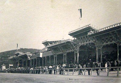 Inaugurato il 4 settembre 1892 con il Premio Trieste vinto da Gisella, l'Ippodromo di Montebello, progettato da Ruggero Berlam (1854-1920) si caratterizzava non solo per la grandezza della sua pista ellittica, ma anche per le tribune lignee ed il palco in stile liberty, sostituiti negli anni Cinquanta con più moderne strutture in muratura. La necessità di usufruire di uno specifico spazio aperto per le corse era già stata avvisata almeno una ventina di anni prima allorquando il Comune aveva concesso tanto la piana di Zaule, quanto il cortile della Caserma Grande per disputare le gare. Alla fine del XIX secolo, l'intuizione del cav. Antonio de Volpi, che aveva pensato di creare una pista trottistica ai Piani di Zaule, non aveva avuto esito felice per la sostanziale lontananza della zona con la città. Nel 1890 il "Comitato delle corse" rese possibile, grazie ad una libera raccolta di denaro ammontante a ben 150.000 fiorini, la costituzione di una specifica Società delle corse presieduta dal barone Morpurgo che fu in grado di acquistare, dalla principessa della Torre-Hohenhole Waldenburg di Duino, la collina di Montebello al prezzo di 195.000 fiorini. La zona collinare, nota per essere un posto dove tradizionalmente venivano tese le reti per la cattura degli uccelli, si prestava particolarmente bene per l'erigenda struttura. Il terreno da spianare, di circa 53.000 tese quadrate, in vendita sin dagli anni Settanta del XIX secolo, era già stato offerto al Comune che avrebbe dovuto destinare la zona a piazzale per le esercitazioni militari in previsione della chiusura della Caserma Grande, ma che non era mai stato in grado di acquistarlo per problemi di ordine economico. Nel 1914 motivi contingenti costrinsero l'Ippodromo ad una forzata chiusura. Gli stenti e le privazioni cui dovettero sottostare i triestini durante il periodo bellico indussero a trasformare la pista in terreno arabile, destinandolo alla coltivazione di rape e patate. Dopo la Redenzione, grazie all'aiuto dei genieri italiani, la struttura fu riportata ai suoi antichi splendori e riaperta nel 1922 alla presenza di Vittorio Emanuele III, della regina Elena e della principessa Jolanda. Nel 1933 non essendosi fatta avanti alcuna società per gestire le corse il Comune si fece carico del compito. Durante la seconda guerra fu usato solo per saggi ginnici e manifestazioni patriottiche. Fu riaperto alle corse nel 1939.