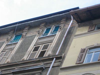 I progetti di costruzione dell'elegante edificio risalgono all'inizio del XX secolo. Il 5 febbraio 1906 il Magistrato Civico, con decreto n. 6716/06 accordava all'ing. Mario Pagliara il permesso di erigere un fabbricato di 5 piani in Via Donatello 8, sul fondo N. Tav. 1372 di Guardiella di proprietà dei signori Antonio Lorandi, Giorgio Saiblecher e Camillo Zustovich. Al piano terra dell'edificio fu ubicata successivamente una trattoria. Lo stabile, in stile eclettico, si distingue per una certa ricercatezza dei particolari e per le pregevoli decorazioni che imprimono alla facciata un plastico movimento di immagini. Da ammirare soprattutto le teste zoomorfe che spiccano sulle lesene laterali delle finestre dell'ultimo piano e le ringhiere in stile liberty tipiche di tanta architettura triestina del primo Novecento.